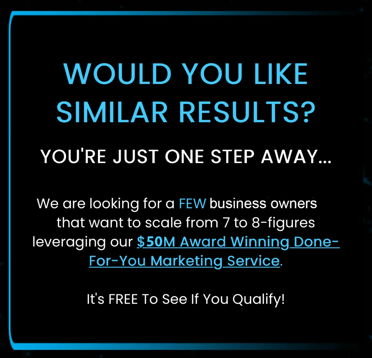 If itās the right fit, we'll extend a 1:1 partnership offer to help you dominate your market and build a reliable, predictable and safe growth machine.